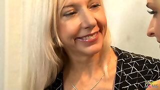 Curvy granny and steamy blonde beauty make out it kinky lezzie duo