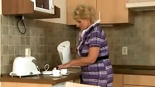 grandmother fingers herself when her stepdaughter comes to visit, she wants to join in and smooches her big nipples and gr
