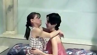 Nerdy petite milf and her lesbian friend plaything their cunts to orgasm