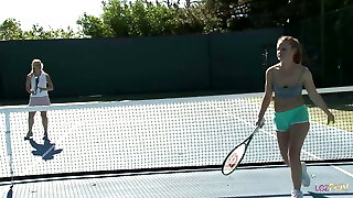 Lesbian girls got heavy-breathing of playing tennis so they jumped into a jacuzzi and embarked grabbing each other