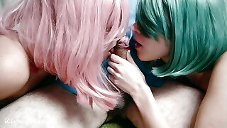 Long Licking Cock, Double Blowjob, Cum Kissing