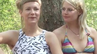 Deutsche Mädels vögeln mit Rope-On im Wald