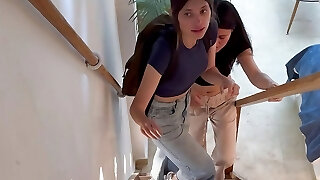 I find out my stepdaughter and her mate fucking on the stairs