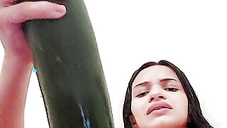 Brazilian teen College-aged+, tears up her pussy deep with a big cucumber, and creams her hot pussy!