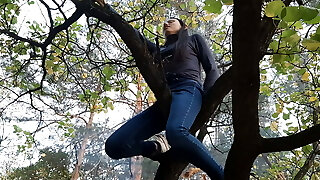 Girl climbed a tree to touch her pussy on it - Girl-on-girl-illusion