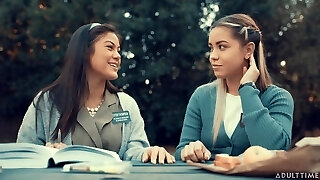Penny Pax seduces a duo of brunettes for a girl/girl threesome